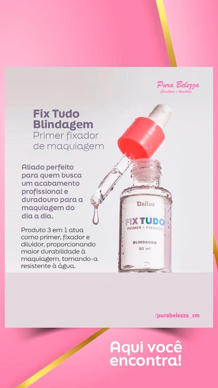 A Blindagem Fix Tudo da Dailus garante o acabamento profissional pro make do dia a dia! Com esse produto multifuncional, que é primer, fixador e diluidor ao mesmo tempo, prepare sua pele pra aumentar a durabilidade do make, torne-o resistente à água e garanta a textura que quiser pra seus produtos líquidos ou cremosos favoritos.