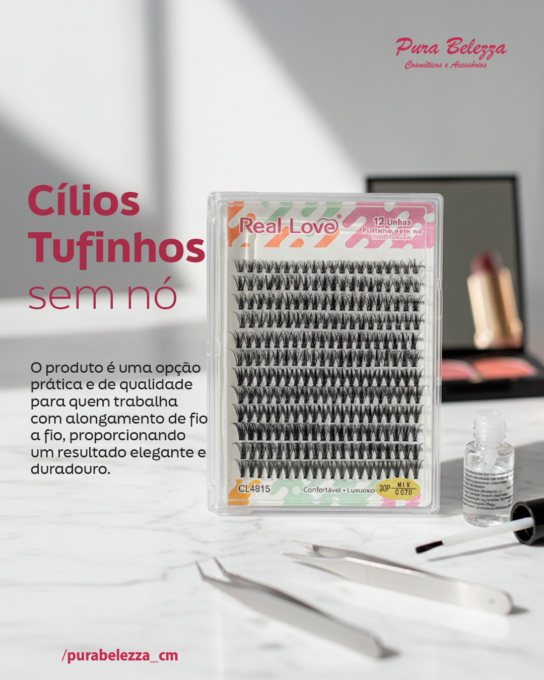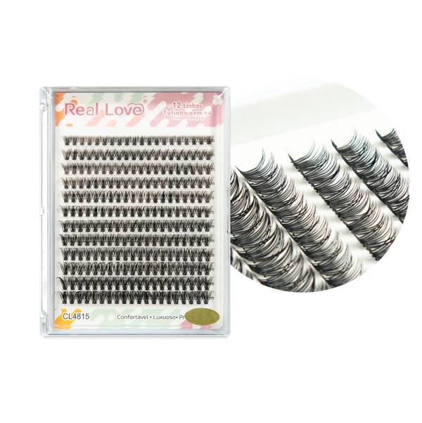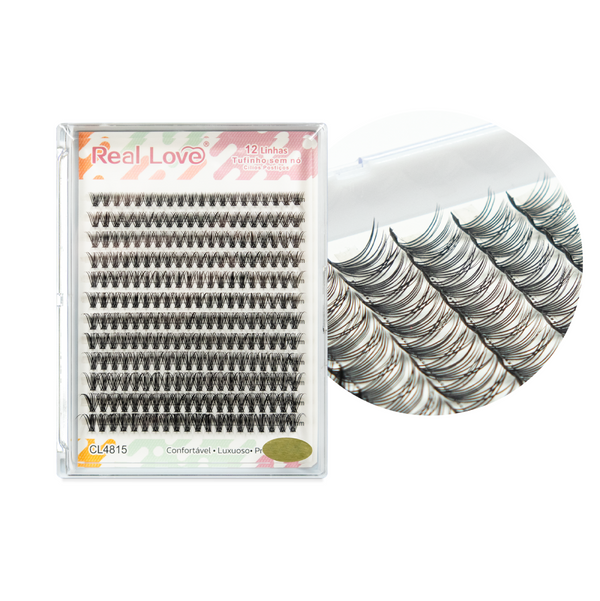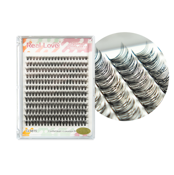 Os Cílios Tufinhos Sem Nó 12 Linhas da Real Love são projetados para profissionais e entusiastas da beleza que buscam um resultado natural, com mais volume e preenchimento.