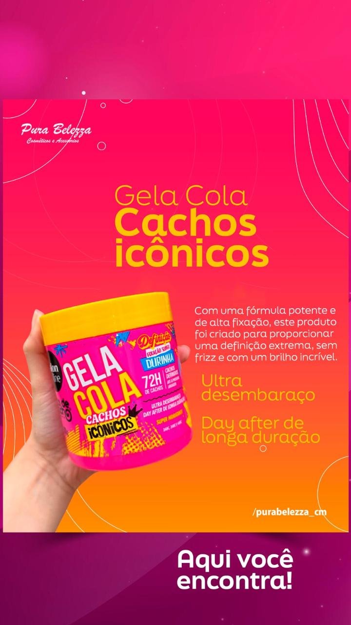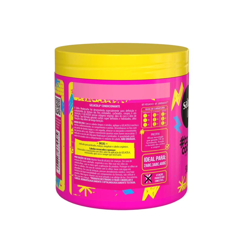A Gelacola #todecacho garante 72h de fixação super durinha com efeito ultra definido e hidratado. Sua fórmula proporciona cachos modelados, com brilho intenso, ação antifrizz e resultado de longa duração mantendo o day after impecável. Indicada também para tranças, penteados e megahairs.