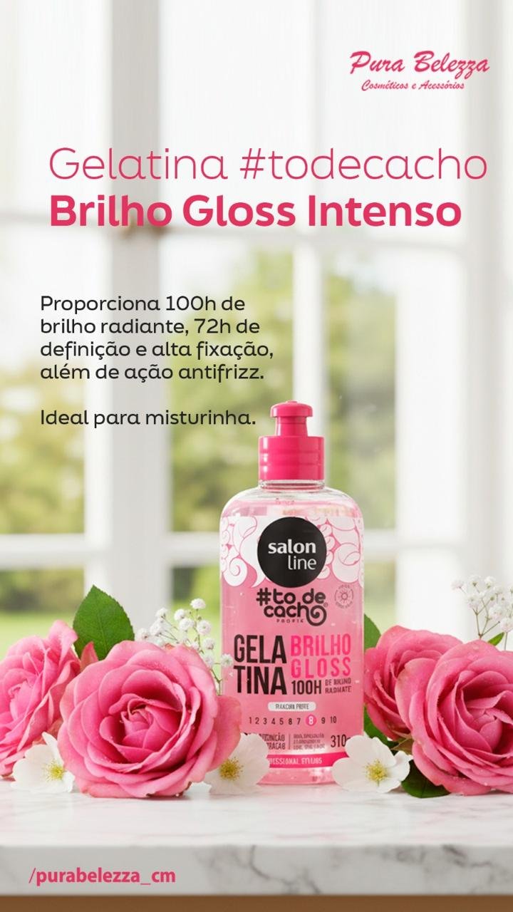A Gelatina #todecacho Brilho Gloss Fixação Forte proporciona 100h de brilho radiante, 72h de definição e alta fixação, além de ação antifrizz. Ideal para misturinha.