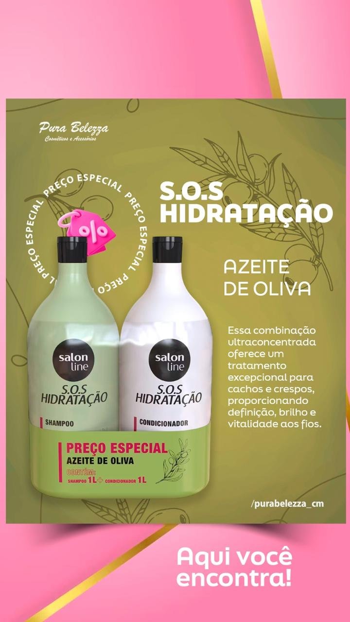 Explore o poder nutritivo do Kit Shampoo e Condicionador S.O.S Hidratação Azeite de Oliva da Salon Line. Essa combinação ultraconcentrada oferece um tratamento excepcional para cachos e crespos, proporcionando definição, brilho e vitalidade aos fios. Desenvolvido pela Salon Line, o kit Shampoo e Condicionador Azeite de Oliva é a escolha ideal para quem busca cachos saudáveis e deslumbrantes. Transforme sua rotina capilar com essa dupla imbatível, garantindo a nutrição necessária para a beleza dos seus cabelos. Adquira agora o kit shampoo e condicionador Salon Line e proporcione o cuidado que seus cachos merecem.