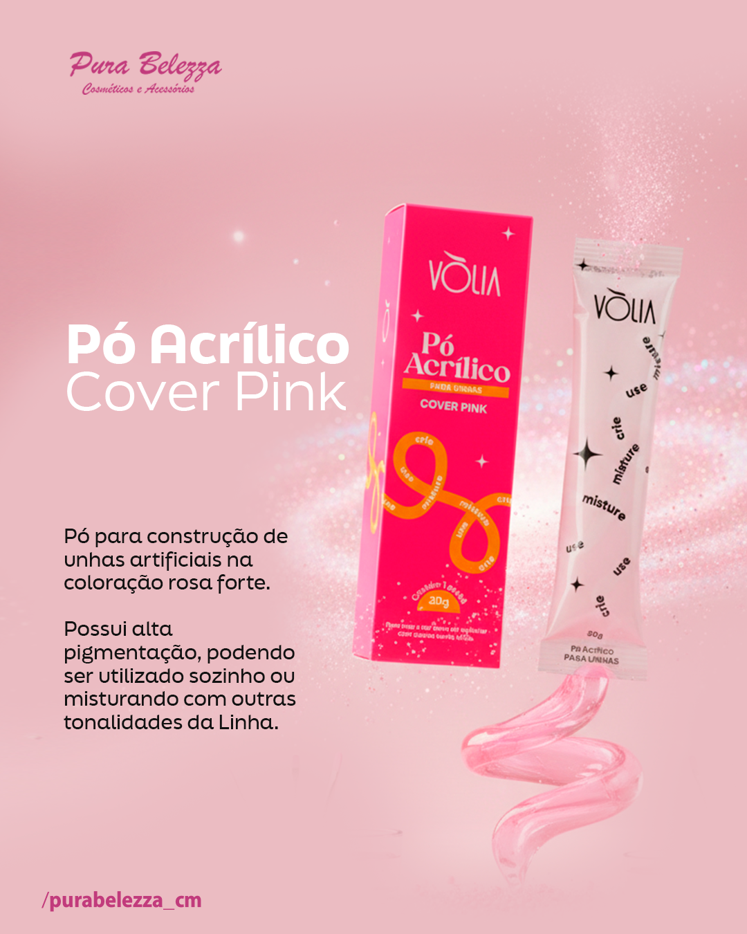O Pó Acrílico Vòlia Cover Pink é um pó para construção de unhas artificiais na coloração rosa forte. Possui alta pigmentação, podendo ser utilizado sozinho ou misturando com outras tonalidades da Linha. Embalagem Econômica em sachê trazendo maior economia para você, e maior cuidado com o meio ambiente.